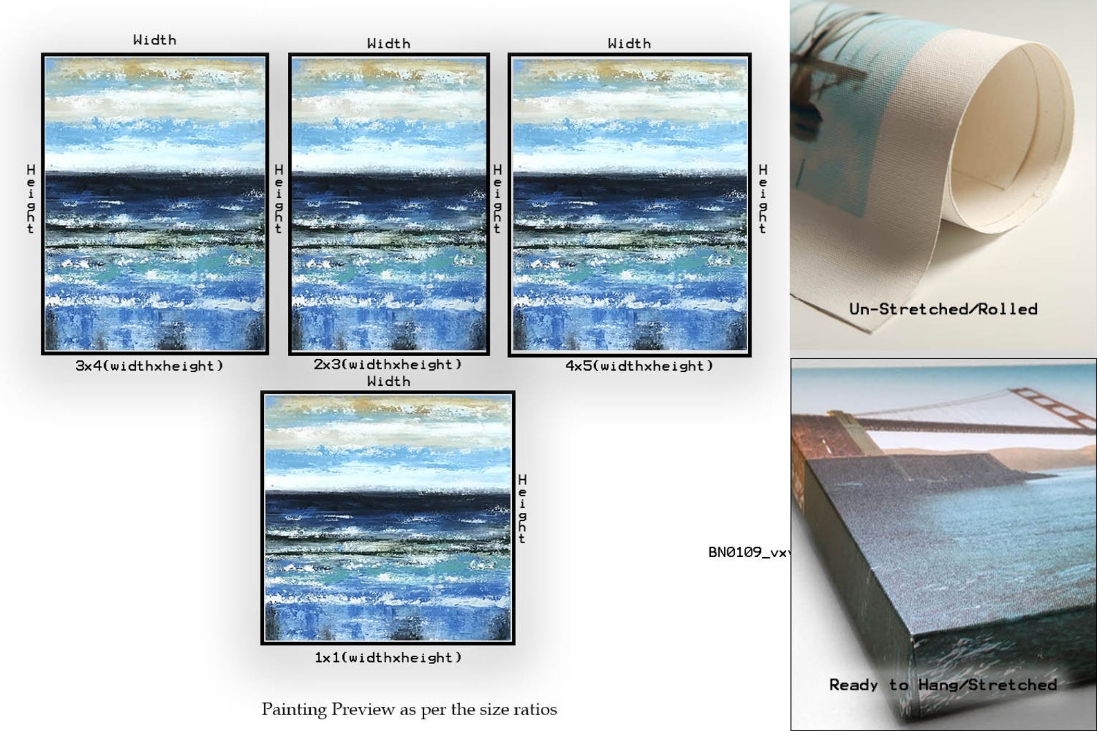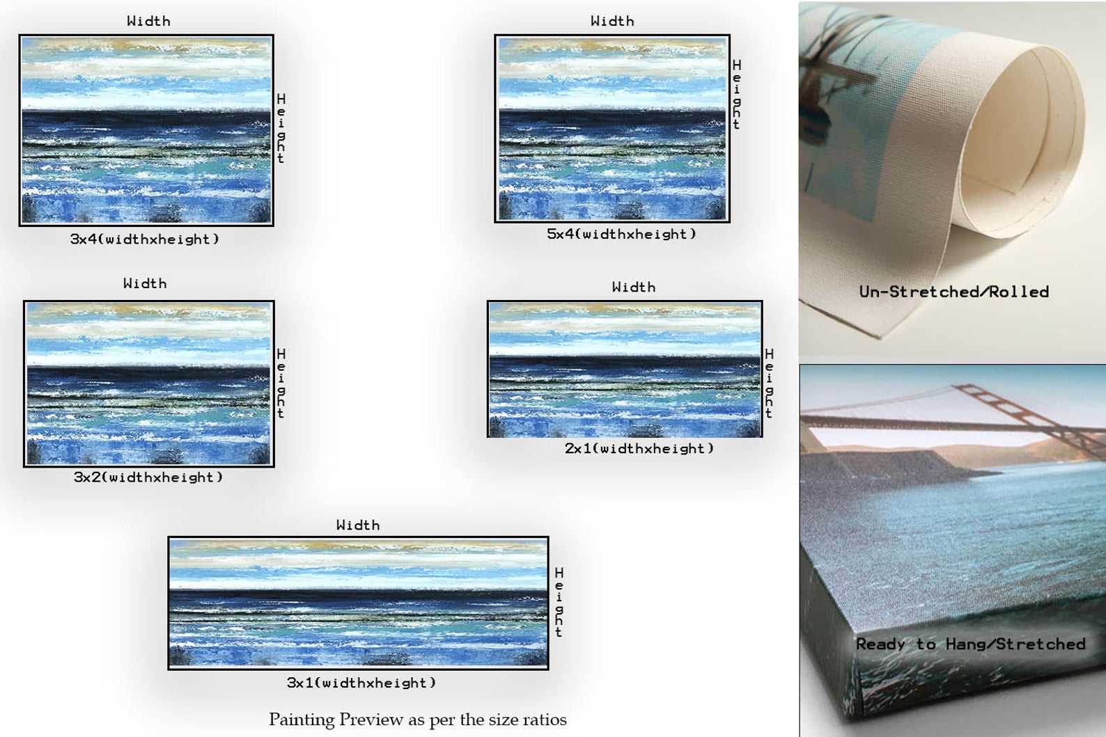 Vertical – 60"x46" | 152×117 CM, Horizontal – 40"x60" | 101×152 CM, Square – 60"x60" | 152×152 CM, Panoramic / Slim – 45"x90" | 114×229 CM, Vertical – 64"x48" | 162×121 CM, Horizontal – 48"x72" | 121×183 CM, Square – 72"x72" | 183×183 CM, Vertical – 72"x54" | 183×137 CM, Horizontal – 53"x80" | 135×203 CM, Square – 80"x80" | 203×203 CM, Vertical – 80"x60" | 203×152 CM, Horizontal – 60"x90" | 152×228 CM, Square – 90"x90" | 228×228 CM, Vertical – 90"x67" | 228×170 CM, Horizontal – 66"x100" | 168×254 CM, Square – 100"x100" | 254×254 CM, Vertical – 100"x75" | 254×190 CM, Horizontal – 77"х116" | 196×295 CM, Square – 116"х116" | 295×295 CM, Vertical – 116"х87" | 295×220 CM, Square – 26"x26" | 66×66 CM, Panoramic/Slim – 18"x36" | 46×91 CM, Vertical – 32"x24" | 81×61 CM, Horizontal – 20"x30" | 51×76 CM, Square – 32"x32" | 81×81 CM, Panoramic / Slim – 24"x48" | 61×122 CM, Vertical – 40"x30" | 101×76 CM, Horizontal – 24"x36" | 61×91 CM, Square – 40"x40" | 101×101 CM, Panoramic / Slim – 30"x60" | 77×153 CM, Vertical – 46"x34" | 117×87 CM, Horizontal – 30"x46" | 77×117 CM, Square – 46"x46" | 117×117 CM, Panoramic / Slim – 36"x72" | 91×182 CM, Vertical – 54"x40" | 137×101 CM, Horizontal – 36"x54" | 91×137 CM, Square – 50"x50" | 127×127 CM, Panoramic / Slim – 40"x80" | 102×204 CM